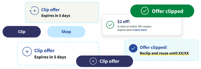 We worked to unify and consolidate the numerous variations and states that components often have across web and app platforms. The “Coupons” component had too many states and styles, while the updated component simplifies component variations and better implements coupons into product cards.